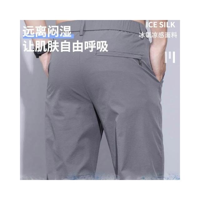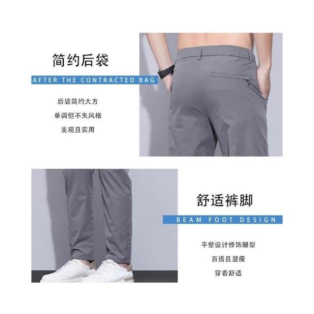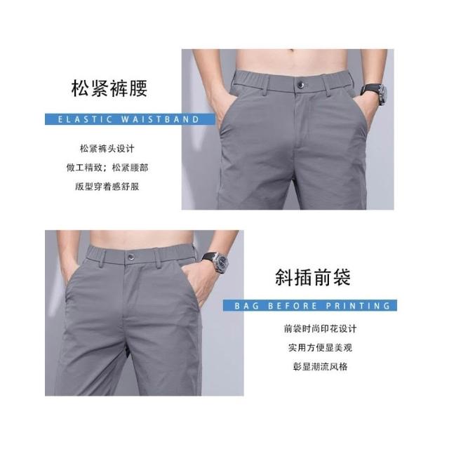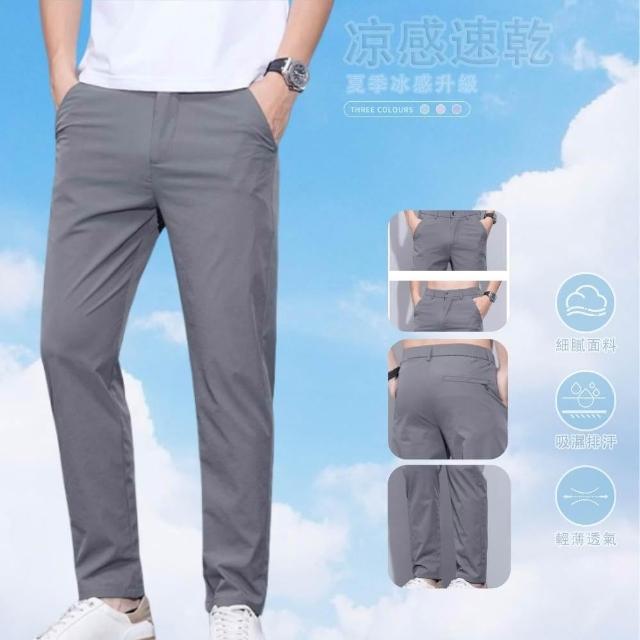 長褲男夏天輕薄透氣寬鬆涼感褲抗皺免燙西裝褲中年爸爸商務小西褲工作褲男士彈力中腰休閒褲冰絲涼感速乾闊腿褲日常通勤直筒褲