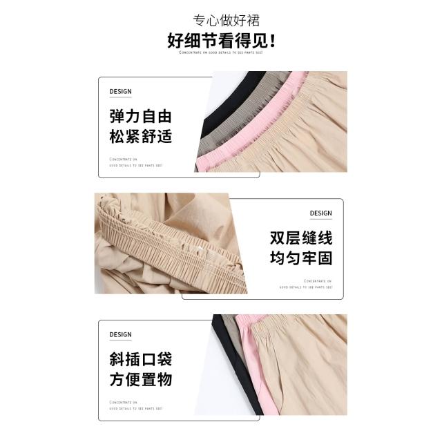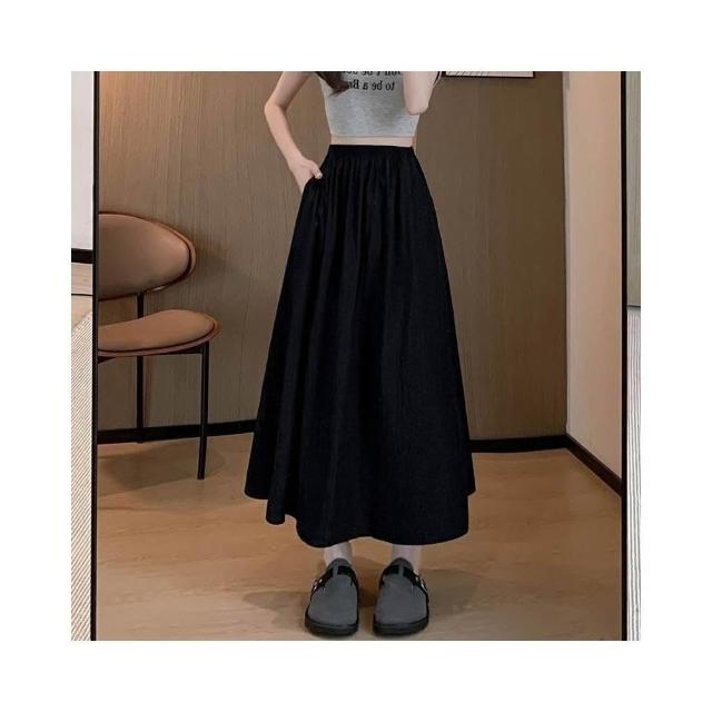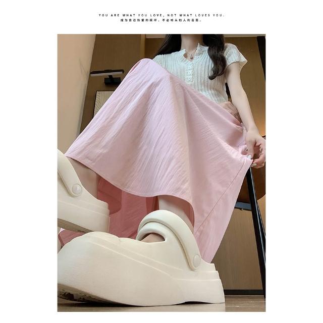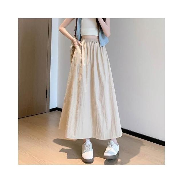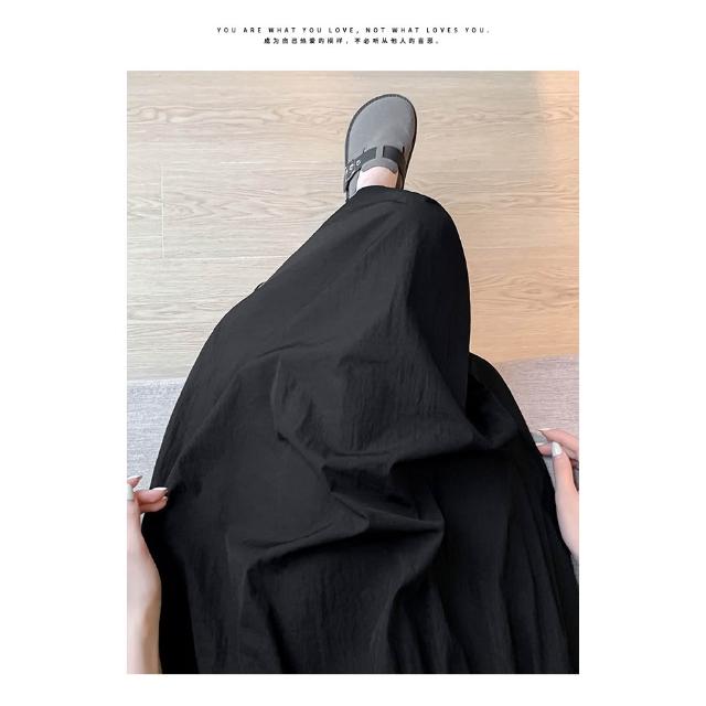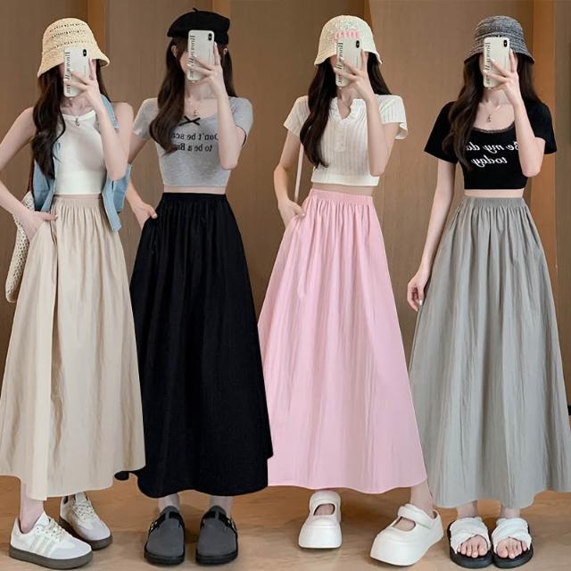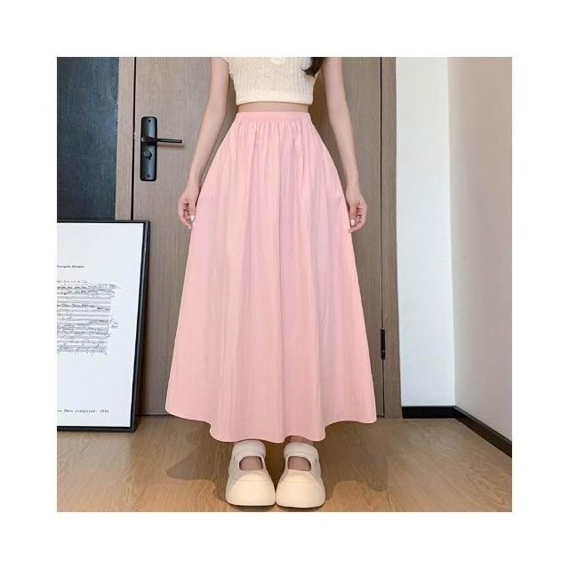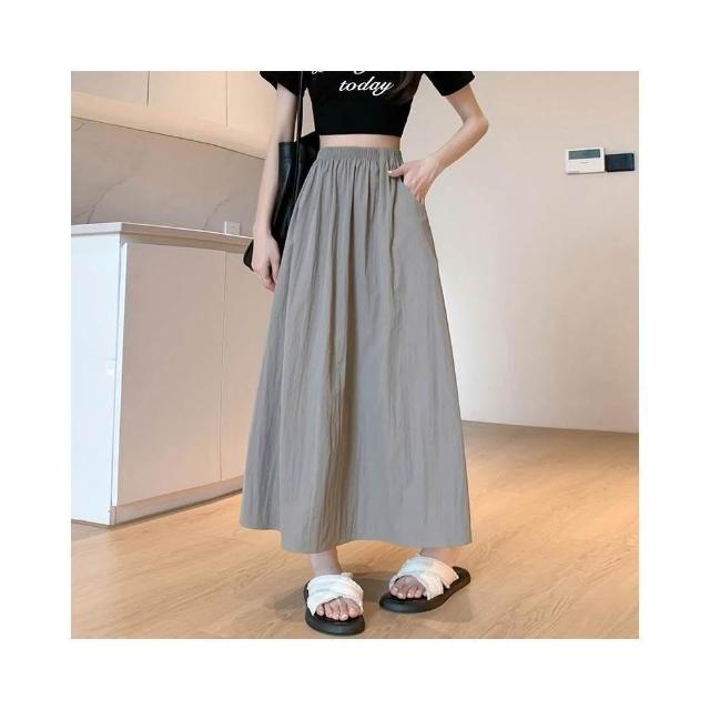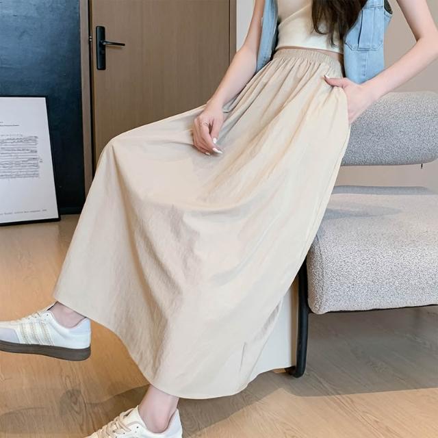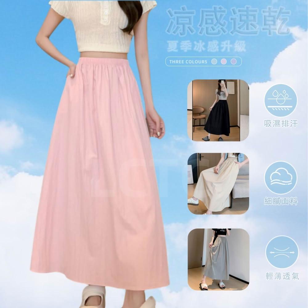 半身長裙女夏季寬鬆透氣高腰彈力a字裙素色褶皺吸濕排汗速乾寬裙夏天薄款顯瘦顯高傘裙女生遮贅肉垂感蛋糕裙涼感山本裙子