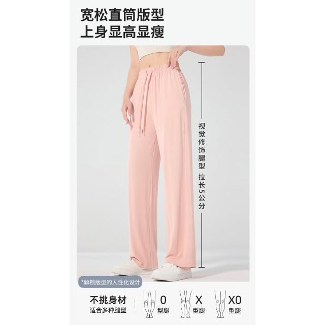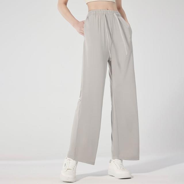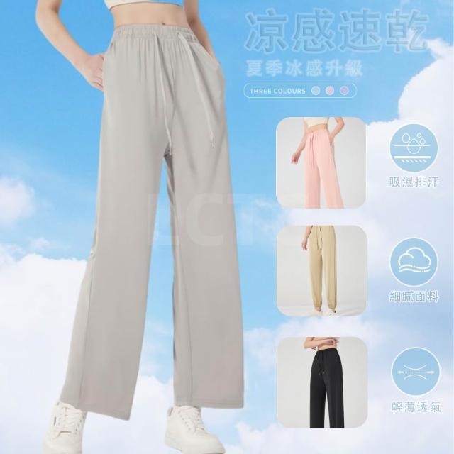 涼感寬褲女 冰絲長褲 闊腿直筒長褲 速乾長褲 彈力透氣褲 排汗吸濕褲 排汗褲 機能長褲 運動長褲 女