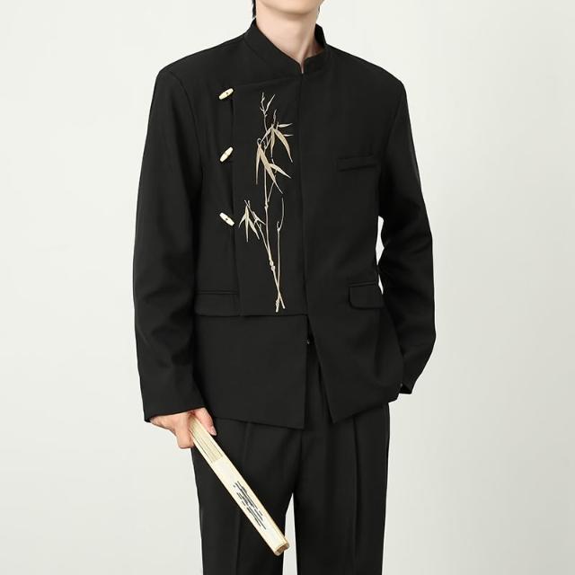 新中式外套 國風外套 西裝外套 西服外套 唐裝 中山裝 晚禮服 刺繡中山裝外套 伴郎禮服 婚慶西裝 漢服外套男