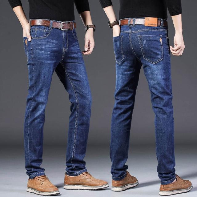 直筒牛仔褲男款休閒運動長褲防風保暖褲大尺碼彈性寬褲發熱工作褲彈力緊身商務低腰長褲男生黑色藍色鬼洗牛仔長褲男士緊身登山褲子