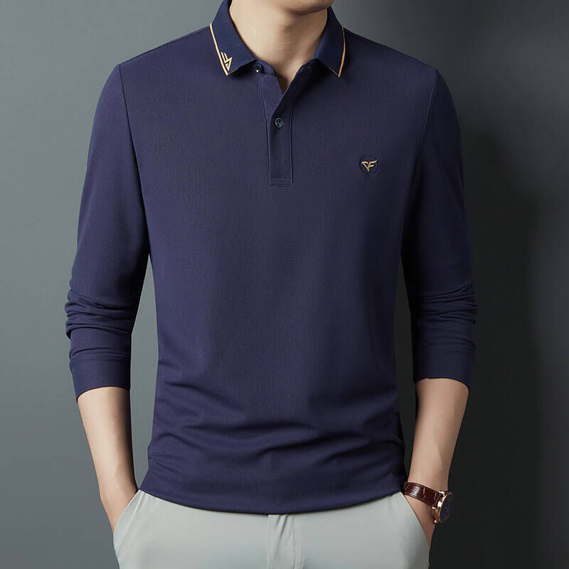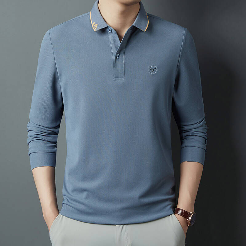 長袖polo衫男大尺碼涼感吸濕排汗衫春秋季運動薄款上衣爸爸高級感年輕男裝長袖t恤男款高爾夫球衫速乾透氣商務修身正肩短袖