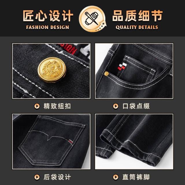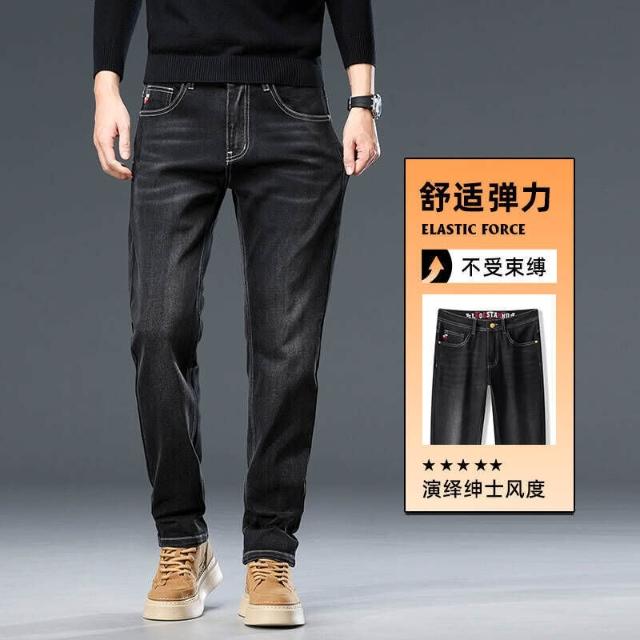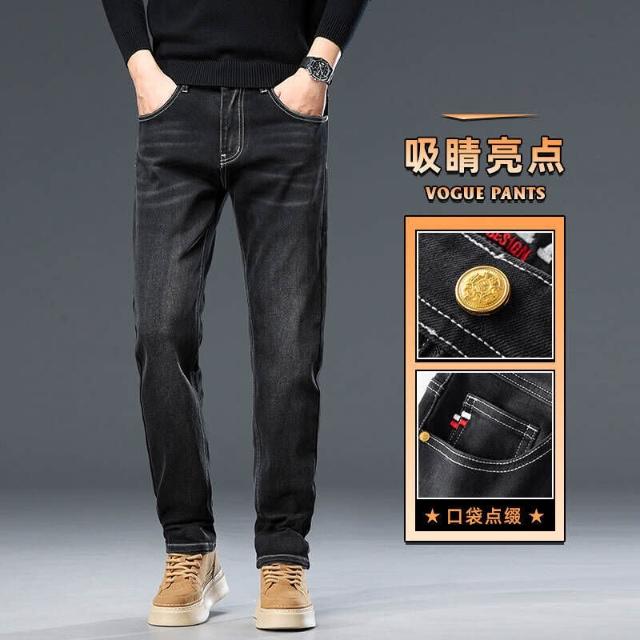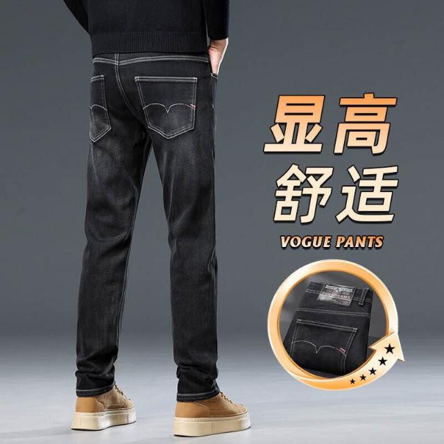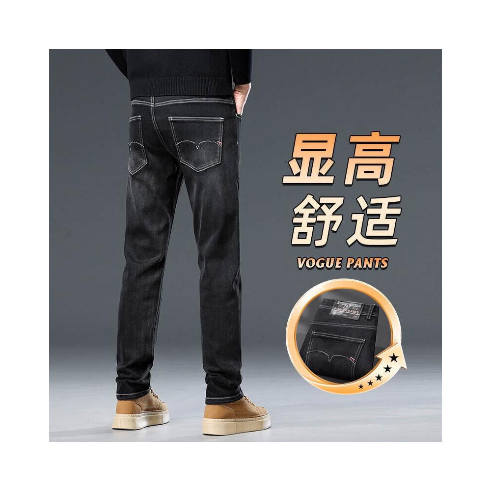 牛仔褲男商務秋冬修身彈力小腳長褲通勤厚磅保暖低腰直筒耐磨工作做舊垂感休閒水洗紳士中年牛仔工裝褲男牛仔大尺碼加厚春秋長褲男