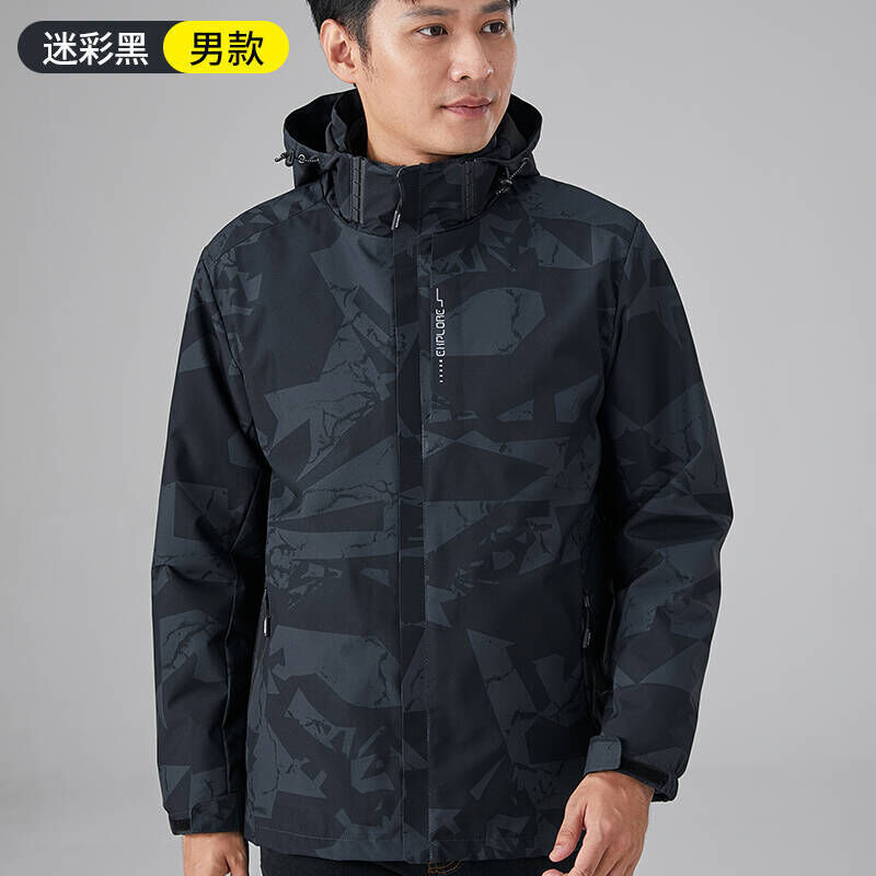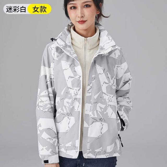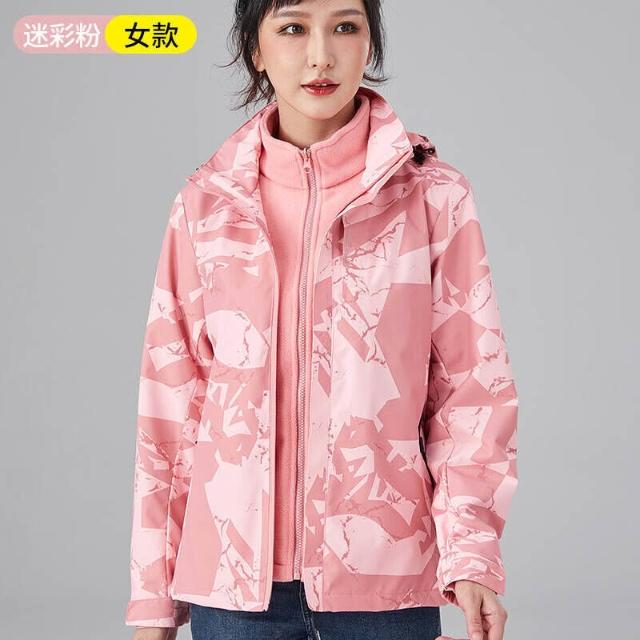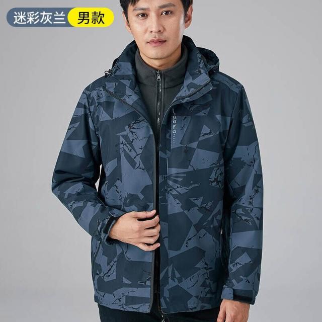 衝鋒衣迷彩三合一戶外男女同款連帽可拆卸登山服男2025新款秋冬戶外運動抓絨內膽兩件套男防水滑雪服防風耐磨高級感衝鋒衣