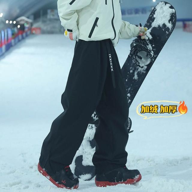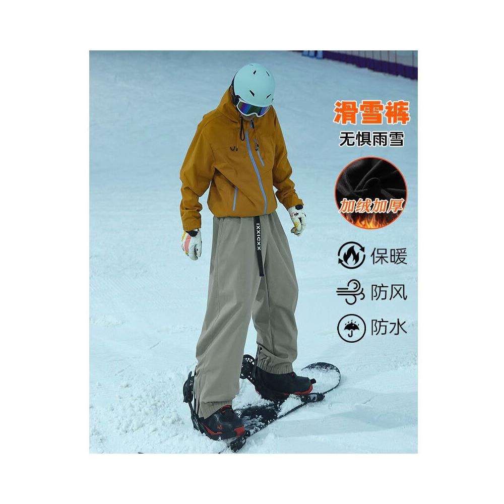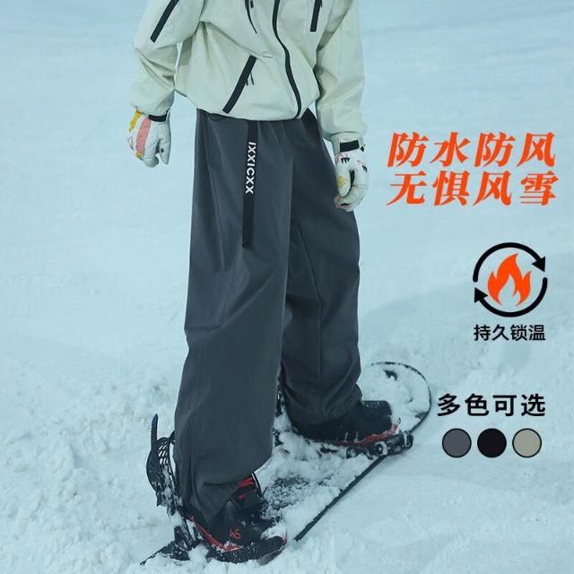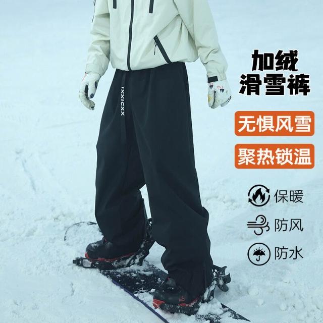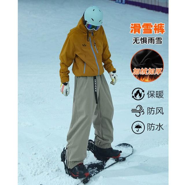 雪褲男女生防風防水保暖褲衝鋒褲工裝褲棉褲寬鬆休閒褲束腳褲直筒褲秋冬天新品多口袋鬆緊腰抗寒工作褲加絨加厚運動長褲雪地滑雪褲