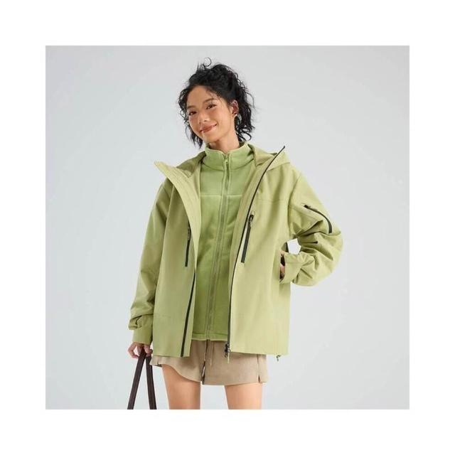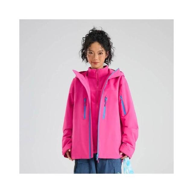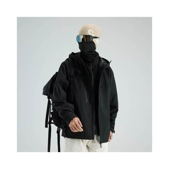 衝鋒衣三合一秋冬季男女連帽刷毛防風防水防污保暖連帽外套雪地禦寒滑雪服夾克棉服棉襖韓國風衣短款加絨加厚內膽兩件式戶外登山服