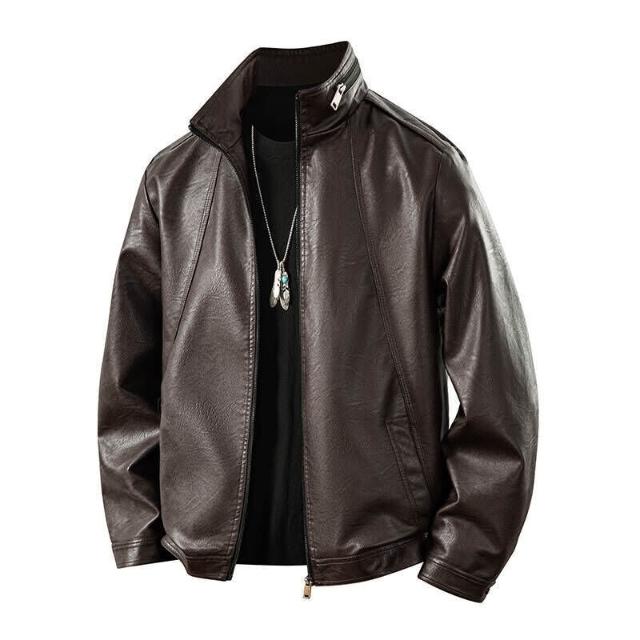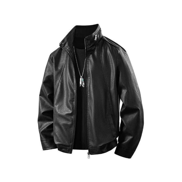 皮衣男新款機車中老年秋冬裝pu皮夾克外套加絨加厚保暖大尺碼男裝爸爸短版帥氣青年皮外套立領休閒修身免燙仿皮皮衣男裝外套