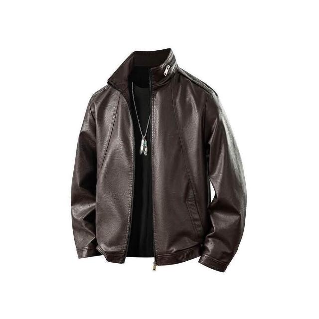 皮衣男新款機車中老年秋冬裝pu皮夾克外套加絨加厚保暖大尺碼男裝爸爸短版帥氣青年皮外套立領休閒修身免燙仿皮皮衣男裝外套