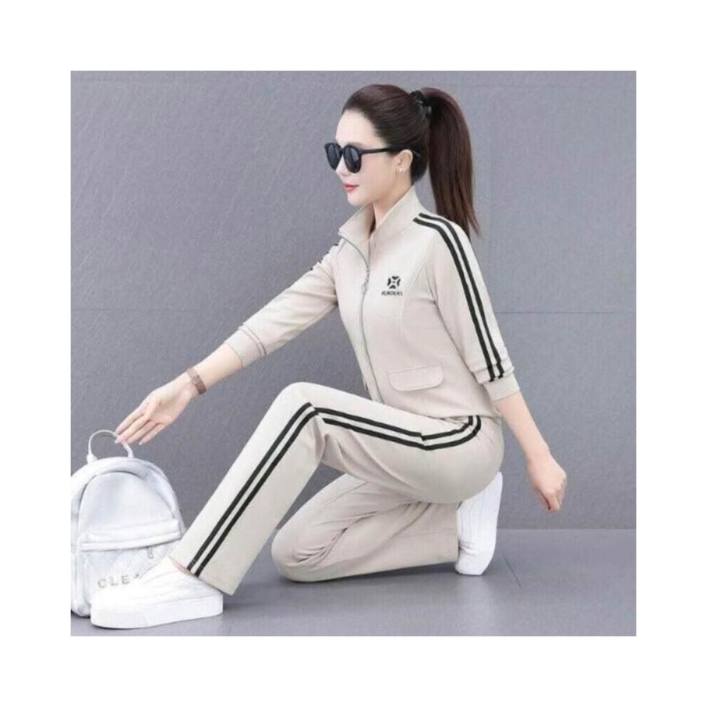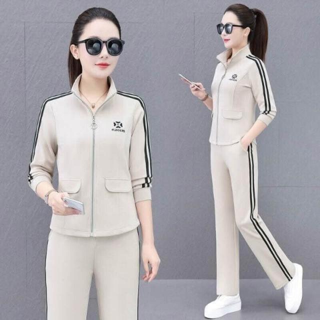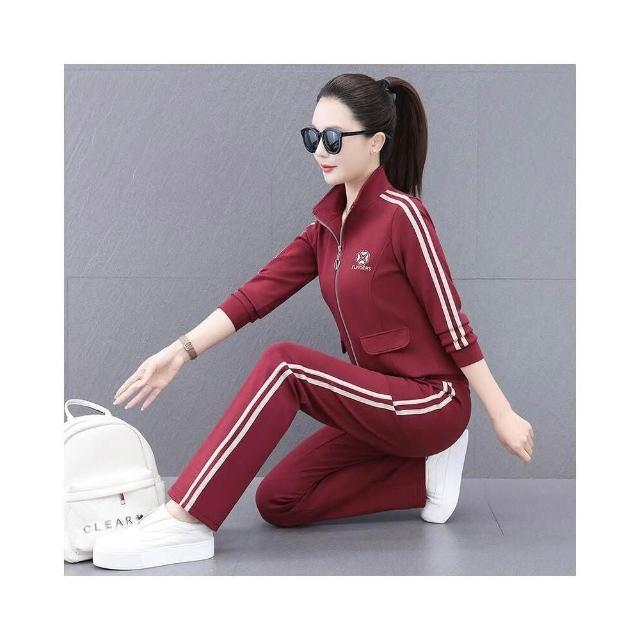 運動套裝女裝春夏套裝休閒服瑜伽服運動健身通勤套裝時尚新款銹花開衫拉鏈立領運動套裝女春秋女休閑團購套裝褲裝運動服修身戶外運動登山服高爾夫球服
