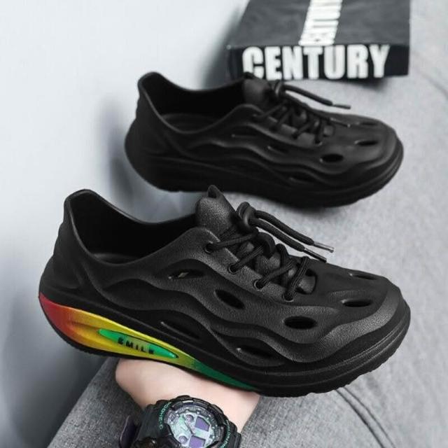 洞洞鞋男EVA鞋底踩屎感防滑防臭外出拖鞋室內防水減震厚底包頭拖鞋透氣耐磨輕便舒適一腳蹬懶人鞋室外止滑健走休閒運動沙灘涼鞋