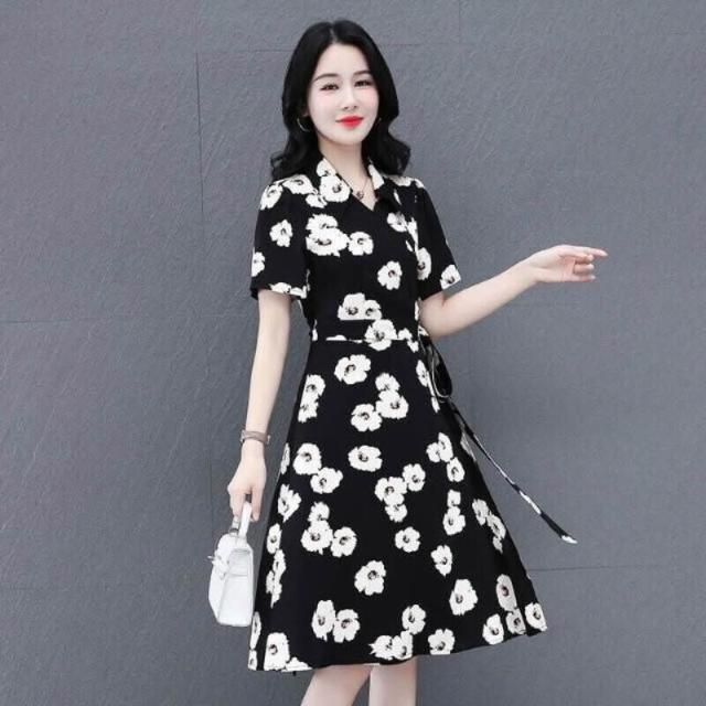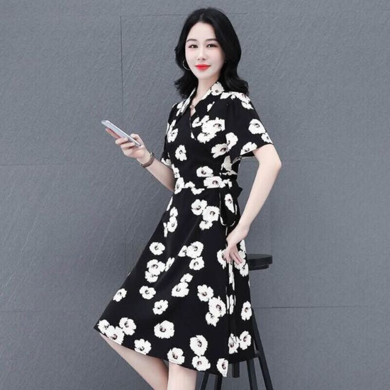 洋裝連身裙女直筒連身裙連身洋裝顯瘦遮肚寬鬆通勤雪紡百搭春夏媽媽穿搭翻領氣質連衣裙梨形身材a字裙小個子收腰顯瘦裙通勤洋裝度假百搭女溫柔風大尺碼