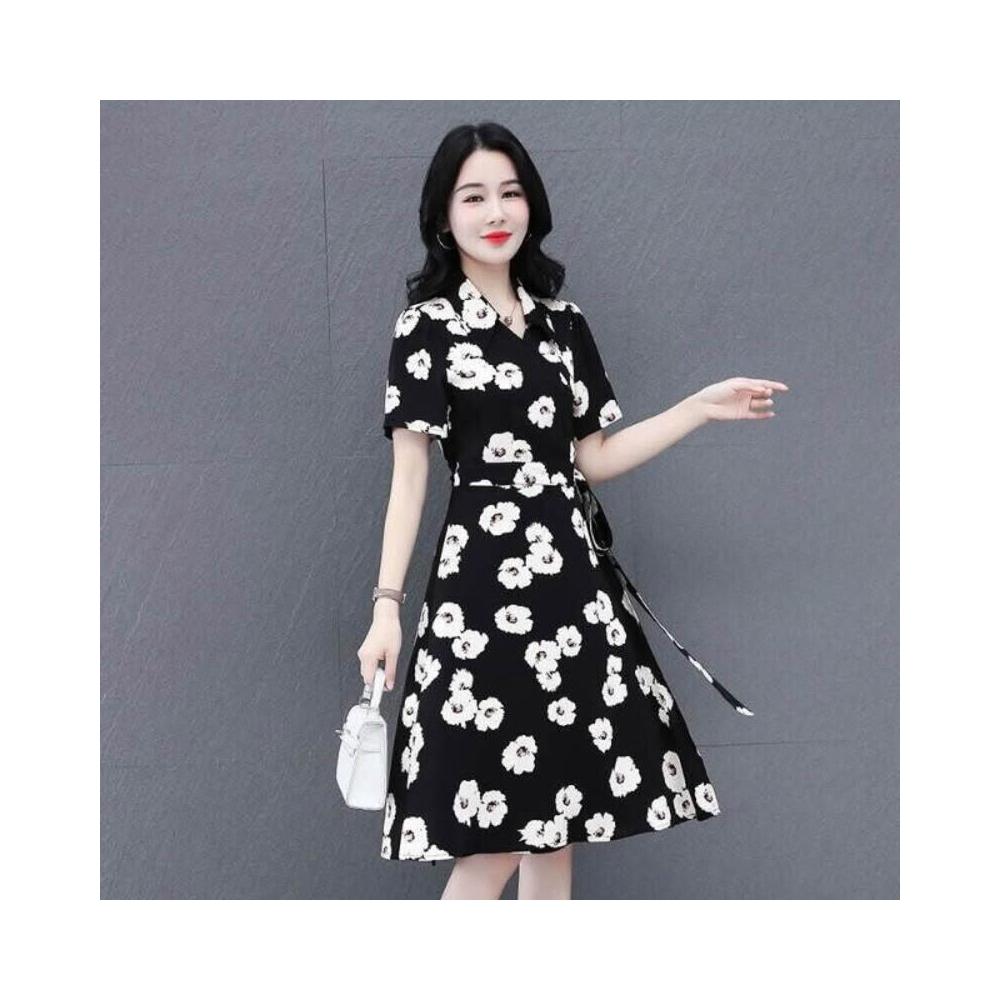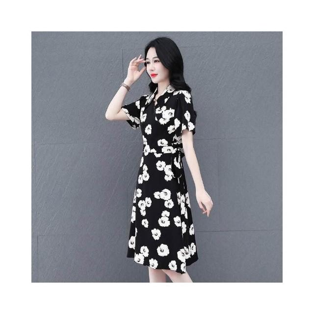 洋裝連身裙女直筒連身裙連身洋裝顯瘦遮肚寬鬆通勤雪紡百搭春夏媽媽穿搭翻領氣質連衣裙梨形身材a字裙小個子收腰顯瘦裙通勤洋裝度假百搭女溫柔風大尺碼