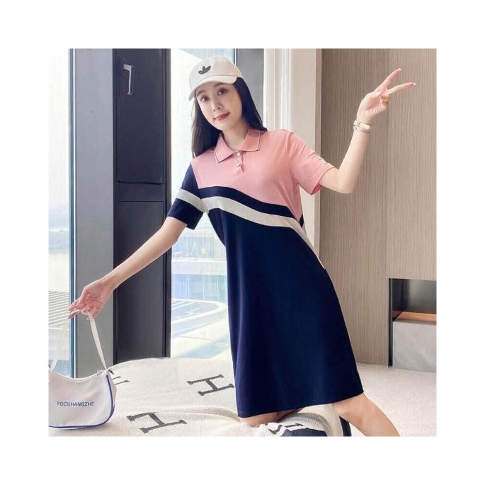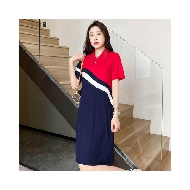 洋裝連身裙女直筒連身裙連身洋裝顯瘦遮肚寬鬆通勤雪紡百搭春夏媽媽休閑Polo領連衣裙女2023年夏季媽媽中長款裙通勤洋裝度假百搭女溫柔風大尺碼