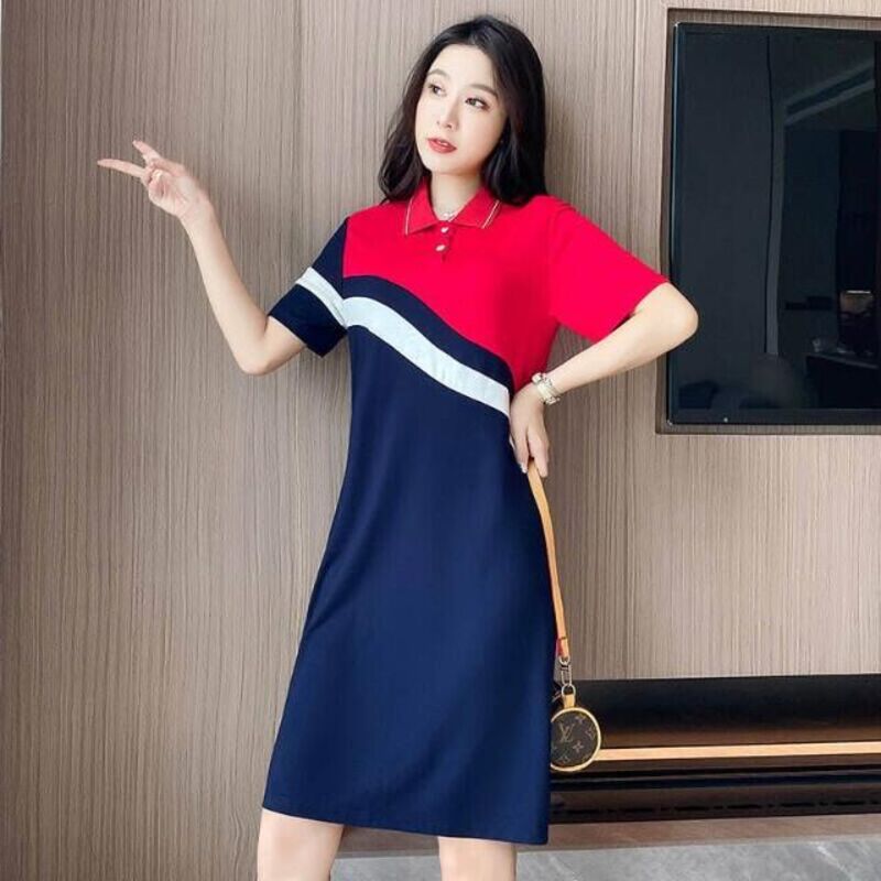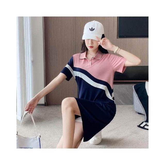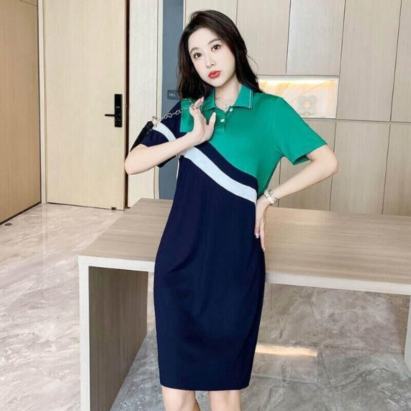 洋裝連身裙女直筒連身裙連身洋裝顯瘦遮肚寬鬆通勤雪紡百搭春夏媽媽休閑Polo領連衣裙女2023年夏季媽媽中長款裙通勤洋裝度假百搭女溫柔風大尺碼