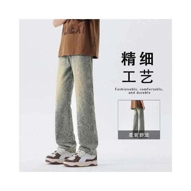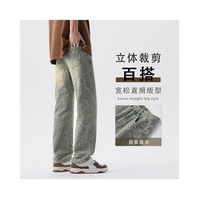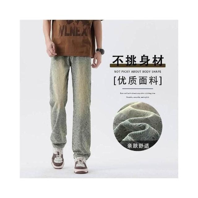 彎刀褲 春夏提花設計直筒牛仔褲男新款寬松潮流休閑褲帥氣百搭高街復古長褲牛仔長褲低腰水洗機能寬褲大尺碼薄款休閒褲耐磨登山褲春秋冬季