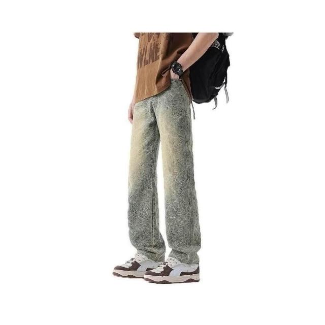 彎刀褲 春夏提花設計直筒牛仔褲男新款寬松潮流休閑褲帥氣百搭高街復古長褲牛仔長褲低腰水洗機能寬褲大尺碼薄款休閒褲耐磨登山褲春秋冬季
