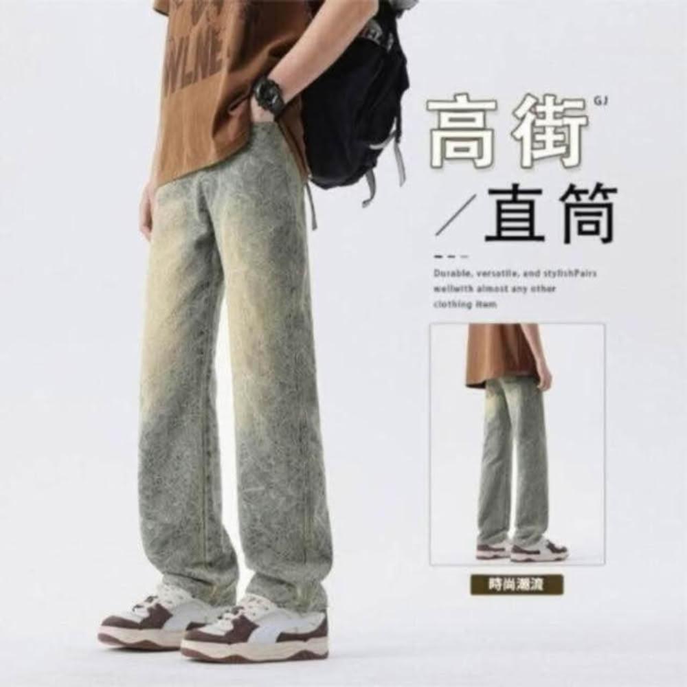 彎刀褲 春夏提花設計直筒牛仔褲男新款寬松潮流休閑褲帥氣百搭高街復古長褲牛仔長褲低腰水洗機能寬褲大尺碼薄款休閒褲耐磨登山褲春秋冬季