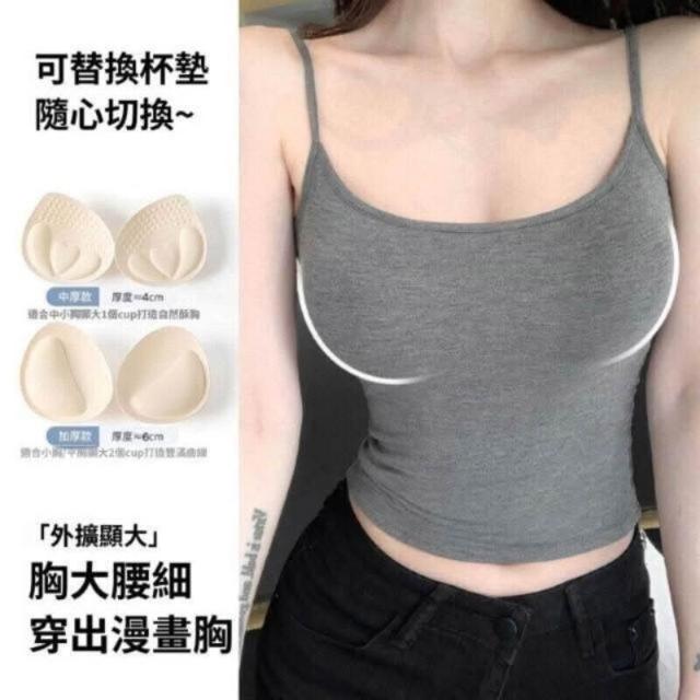 吊帶背心帶胸墊短款純欲風美背顯瘦修身辣妹灰色健身上衣聚攏背心式文胸親膚小吊帶無痕涼感薄款透氣健身背心無鋼圈內衣一體式