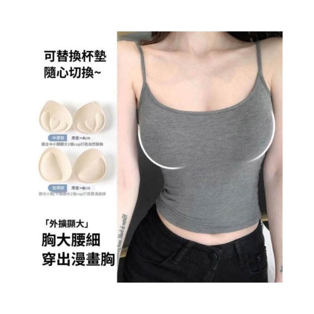 吊帶背心帶胸墊短款純欲風美背顯瘦修身辣妹灰色健身上衣聚攏背心式文胸親膚小吊帶無痕涼感薄款透氣健身背心無鋼圈內衣一體式