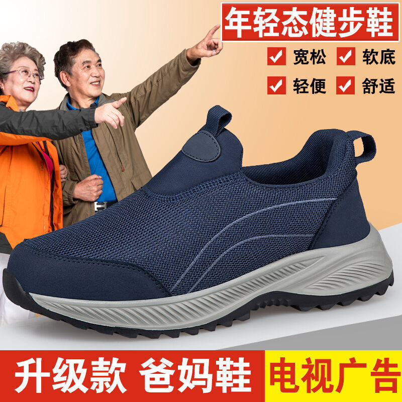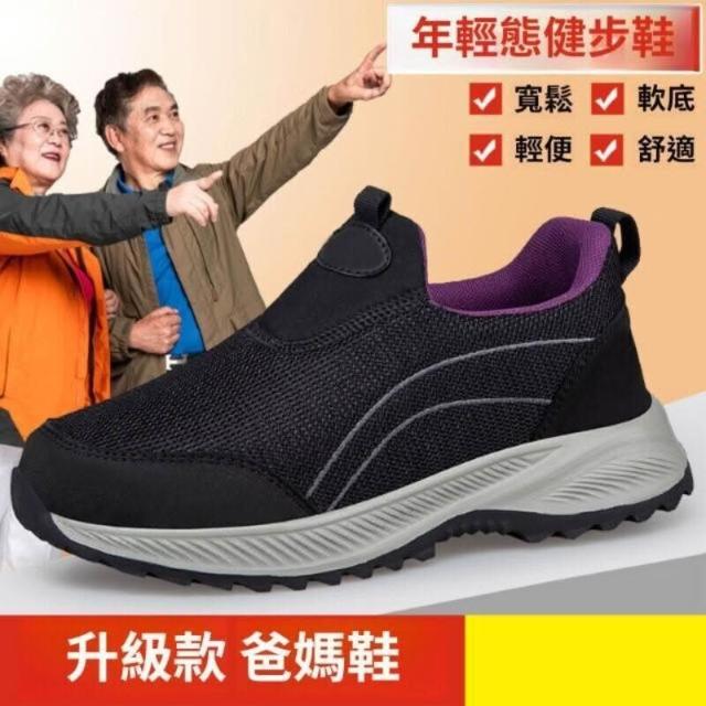 運動鞋男大尺碼軟底彈力透氣耐磨慢跑鞋戶外跑步登山健身騎車休閒鞋防滑網鞋镂空網面減震鞋止滑健走男鞋舒適輕量寬鬆一腳蹬老人鞋