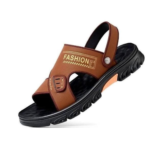 涼鞋男運動厚底涼拖鞋室內室外水陸兩用鞋防水防滑足弓半拖鞋真皮外出拖鞋子大尺碼男士休閒懶人鞋中年爸爸戶外雨鞋平底止滑沙灘鞋