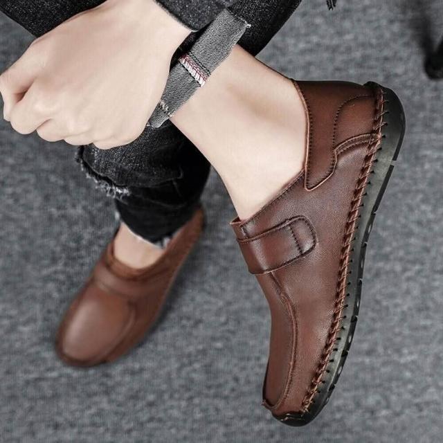 大尺碼 懶人鞋男厚底春秋新款真皮爸爸鞋深口魔術貼縫製平底防滑中老年鞋透氣懶人鞋防水止滑休閒鞋久站不累腳健走鞋耐磨健行鞋減震工作鞋