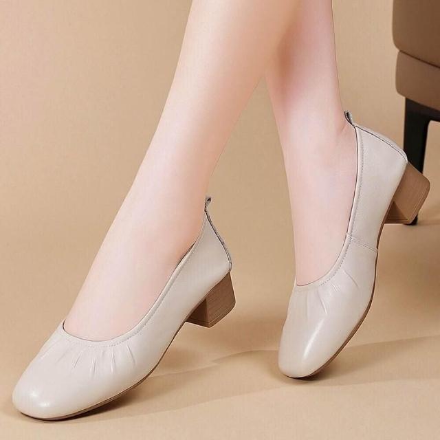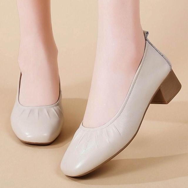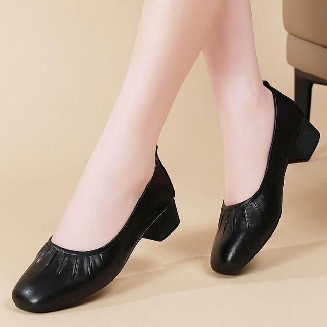 大尺碼 工作鞋女厚底新款平頭粗跟平底單鞋職業女鞋黑色軟底銀行酒店通勤上班皮鞋新款一腳蹬懶人鞋久站不累腳媽媽鞋增高舒適不磨腳娃娃鞋