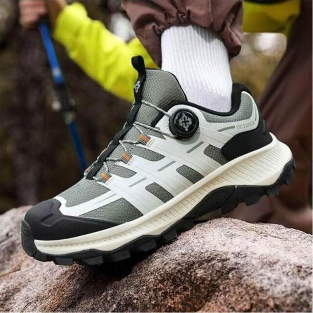 大尺碼 登山鞋男旋轉扣防滑徒步鞋防潑水越野跑步鞋緩震戶外運動鞋耐磨增高透氣輕便防沖擊舒適回彈慢跑鞋久站不累腳平底鞋圓頭通勤休閒鞋
