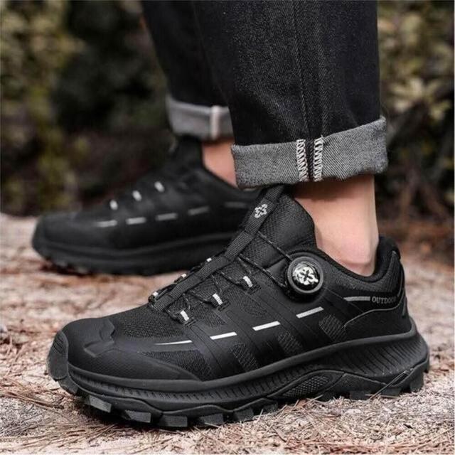 大尺碼 登山鞋男旋轉扣防滑徒步鞋防潑水越野跑步鞋緩震戶外運動鞋耐磨增高透氣輕便防沖擊舒適回彈慢跑鞋久站不累腳平底鞋圓頭通勤休閒鞋