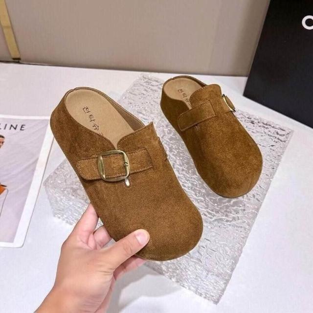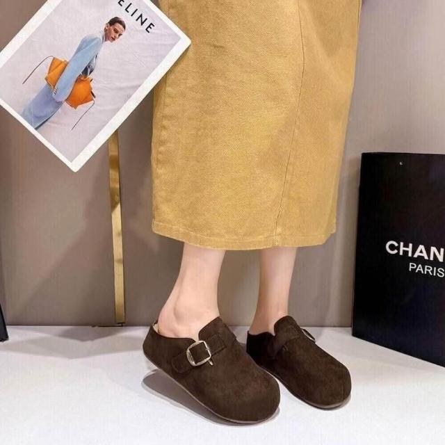 大尺碼 勃肯鞋女款厚底防滑防水穆勒鞋大尺碼止滑包頭拖鞋軟底懶人鞋輕便廚師鞋韓國時尚百搭增高休閒鞋室內室外毛毛女生一腳蹬平底半拖鞋