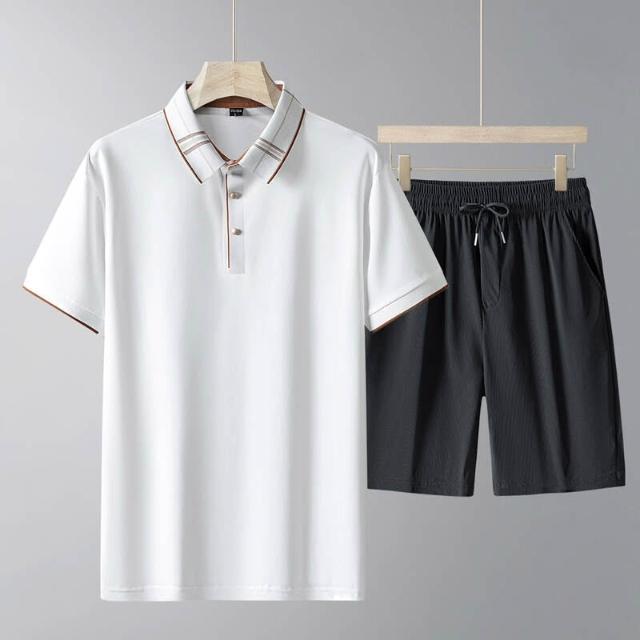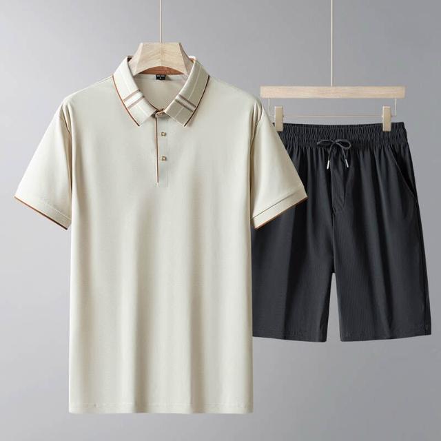 運動套裝男polo衫短袖上衣大尺碼涼感衣短褲吸濕排汗衣薄冰絲短袖T恤褲子休閒套裝男生高爾夫球衣羽球衣服登山透氣速乾褲子 夏天居家舒適套裝運動寬短褲兩件式套裝寬鬆t恤防曬褲中年爸爸男裝兩件套跑步健身衣服