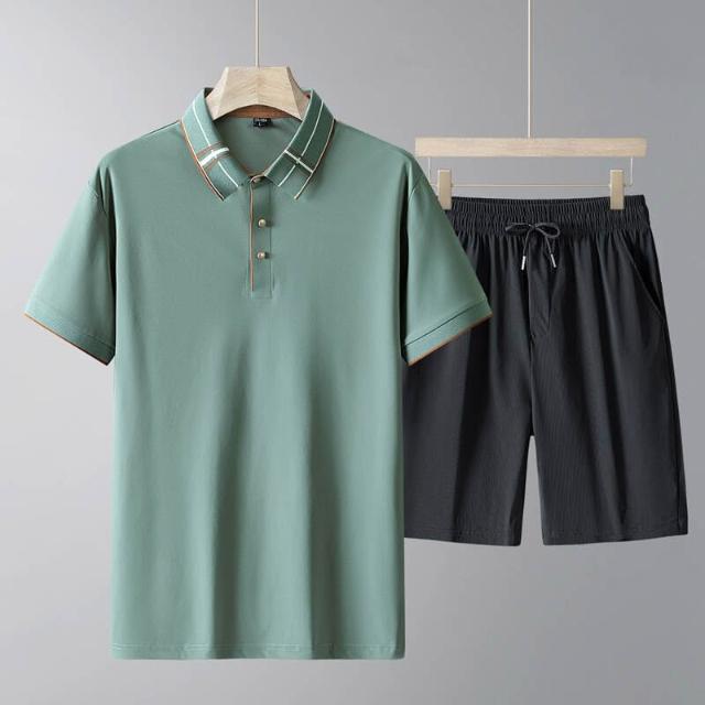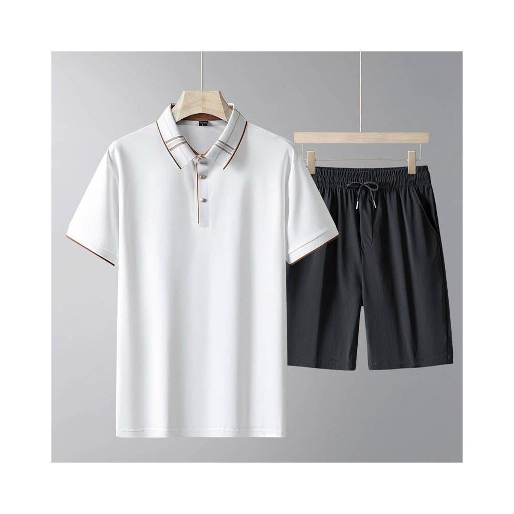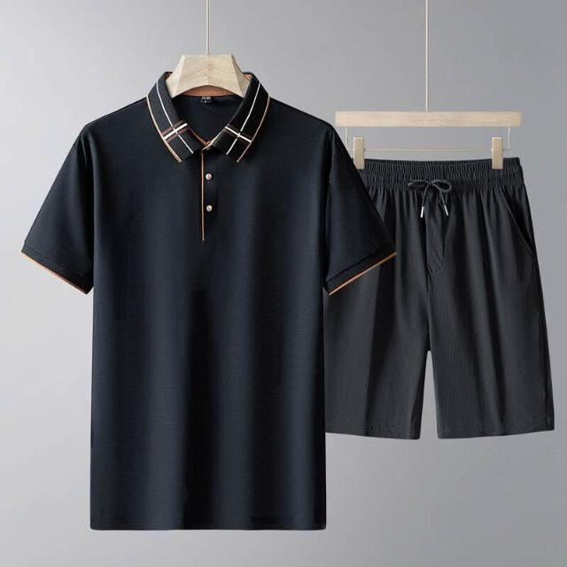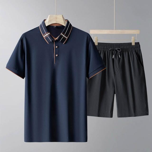 運動套裝男polo衫短袖上衣大尺碼涼感衣短褲吸濕排汗衣薄冰絲短袖T恤褲子休閒套裝男生高爾夫球衣羽球衣服登山透氣速乾褲子 夏天居家舒適套裝運動寬短褲兩件式套裝寬鬆t恤防曬褲中年爸爸男裝兩件套跑步健身衣服