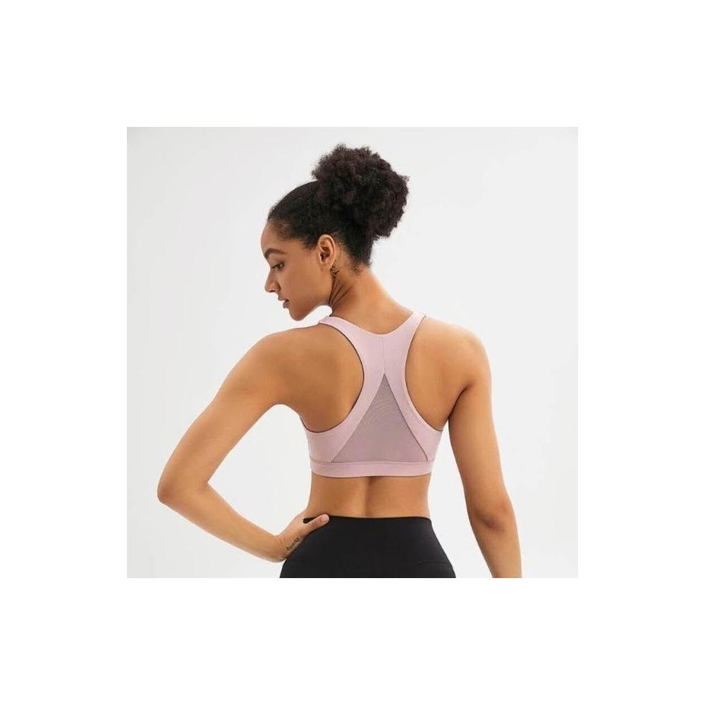 瑜伽文胸夏季純色雙面性感三角美背拼接網紗運動內衣女背心吊帶美背運動內衣內搭上衣女內著瑜伽運動背心性感V領運動內衣美背