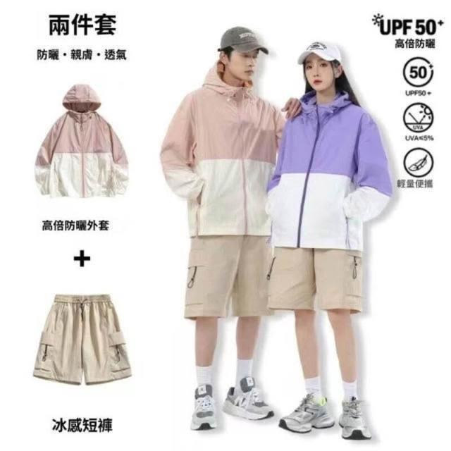 運動套裝女韓版寬鬆顯瘦速乾透氣兩件式短袖休閒健身短褲拼色情侶防曬衣套裝防紫外線皮膚衣工裝褲套裝戶外拼色防曬連帽外套皮膚衣防曬衣套裝速乾衣空調服透氣防曬防紫外線涼感套裝速乾運動套裝