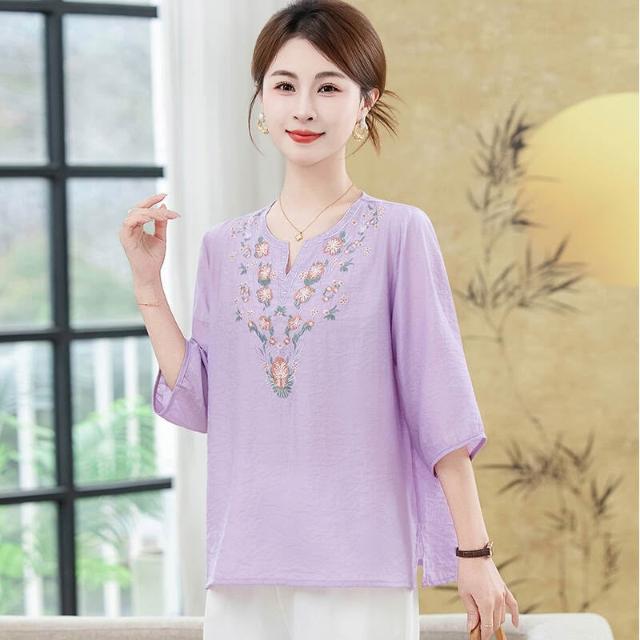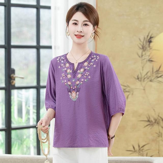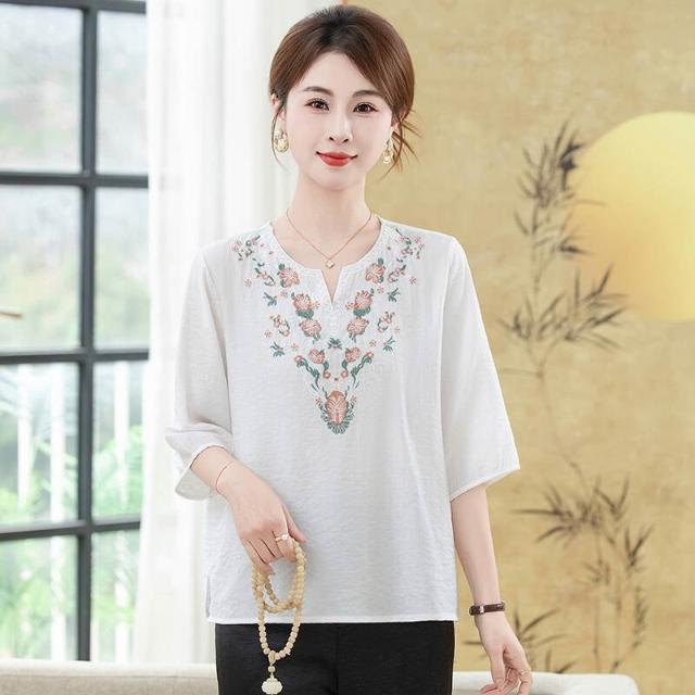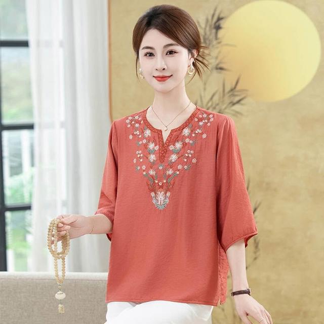 短袖上衣女夏季大尺碼輕薄冰絲涼感V領小衫彈力舒適透氣吸濕速幹排汗耐磨短袖寬鬆耐磨遮肉顯瘦媽媽裝休閒工作健身短版運動上衣