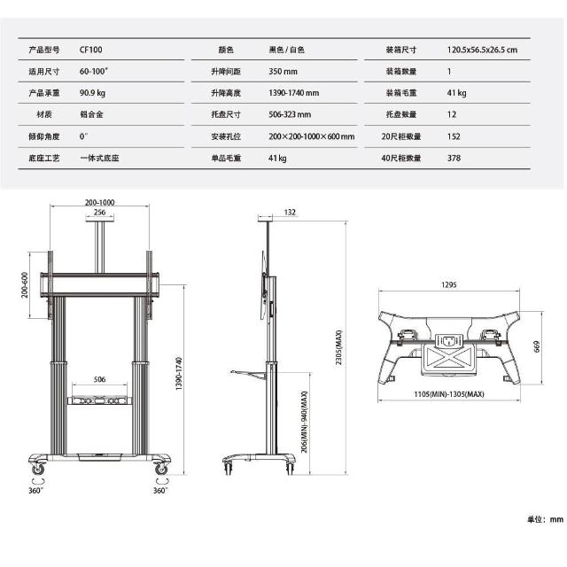 NORTH BAYOUNB CF100 60-100吋 移動型電視架(落地架)