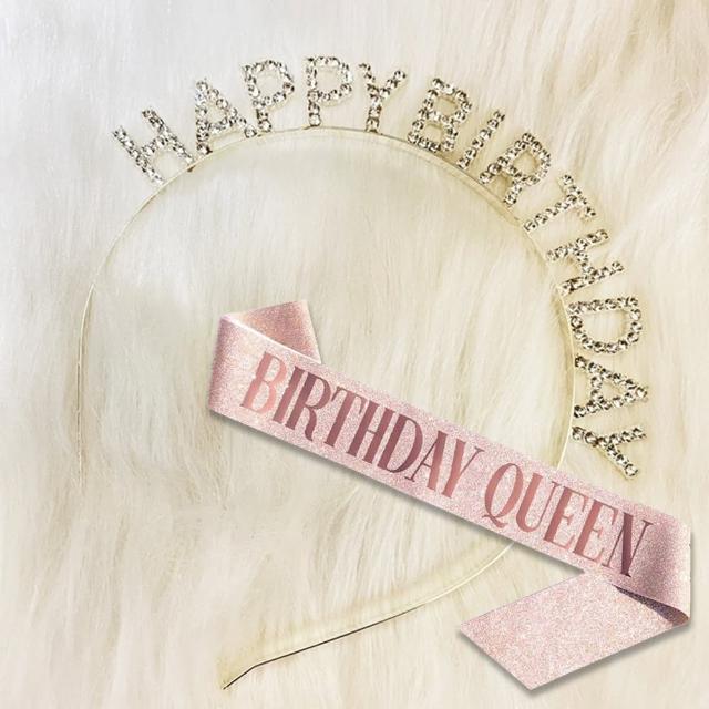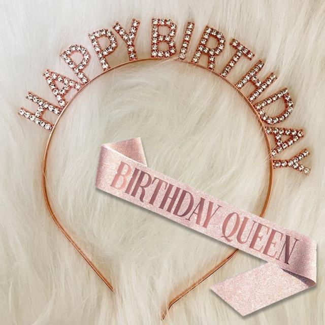 PARTIDO 生日皇冠肩背帶1組生日帽 派對帽 慶生帽 生日派對 生日髮箍 派對道具 拍照道具 生日佈置 週歲佈置