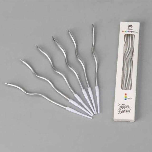 PARTIDO 蛋糕裝飾彎曲蠟燭1盒6入彩色蠟燭 蛋糕 裝飾 生日 蠟燭 週歲佈置 慶生 創意 造型 蠟燭