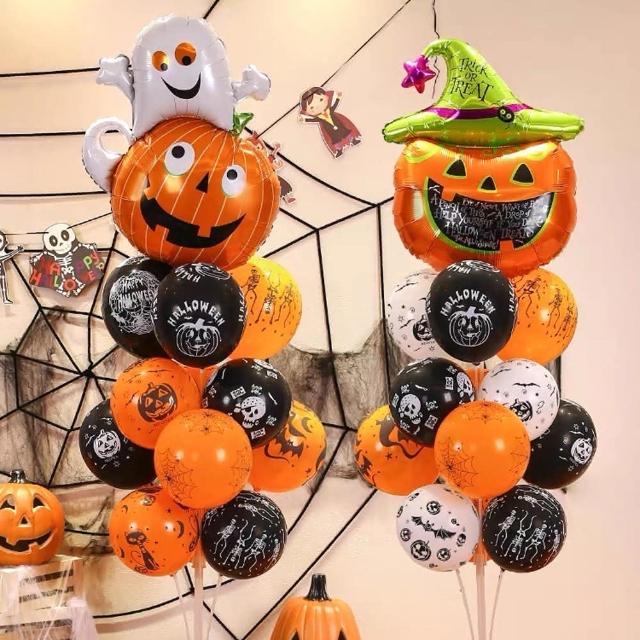 PARTIDO 萬聖節布置130cm氣球支架1組 派對 佈置 禮物 仿空飄 氣球 萬聖節 南瓜 幽靈 地飄 拍照道具