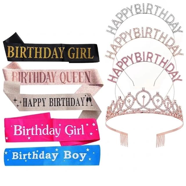 PARTIDO 生日肩背帶 生日皇冠 水鑽皇冠 生日髮箍 值星帶 生日彩帶 生日佈置 拍照道具 慶生 生日派對 派對
