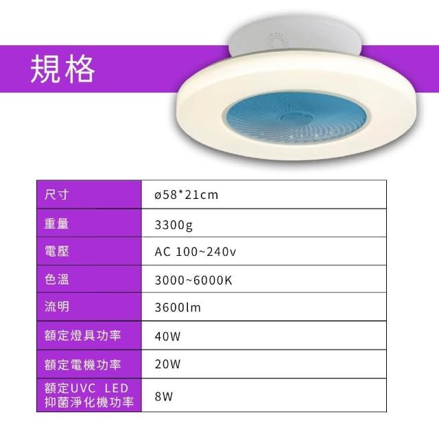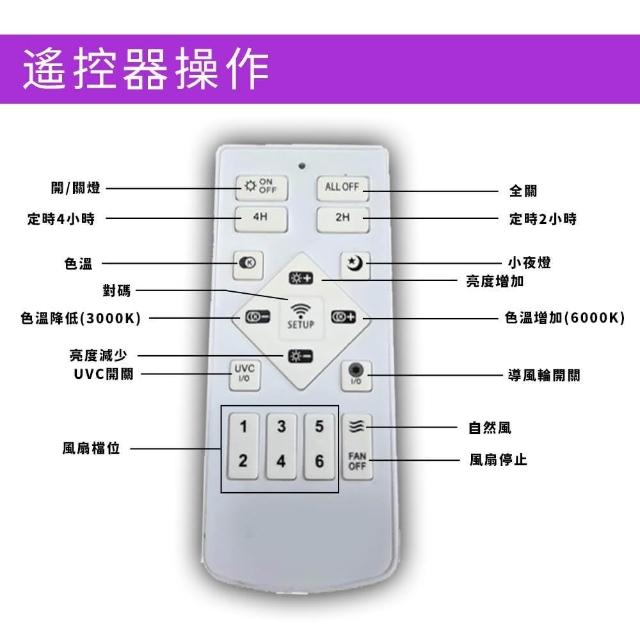 formosa48W UVC LED 抑菌淨化風扇吸頂燈 附遙控器 調光調色 風力調整