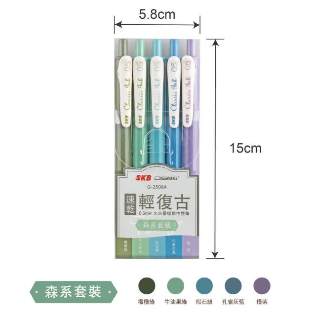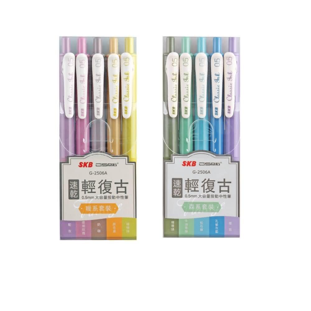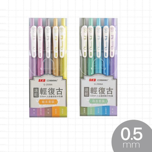 SKB 文明SKB G-2506A 輕復古色速乾大容量按動中性筆 0.5mm / 5入