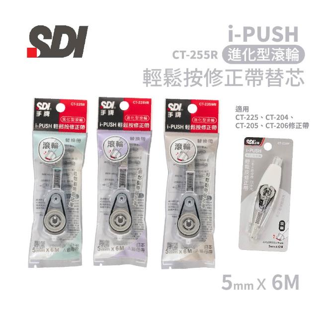SDI 手牌手牌SD CT-225R i-PUSH 輕鬆按修正帶 進化型滾輪修正帶替換帶 5mm