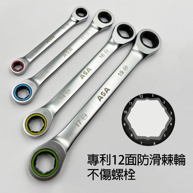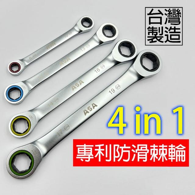 台灣製造120齒4合1雙梅花單向不傷螺栓棘輪扳手,1支四尺寸多功能防滑套筒棘輪扳手雙梅扳手梅花扳手棘輪板手