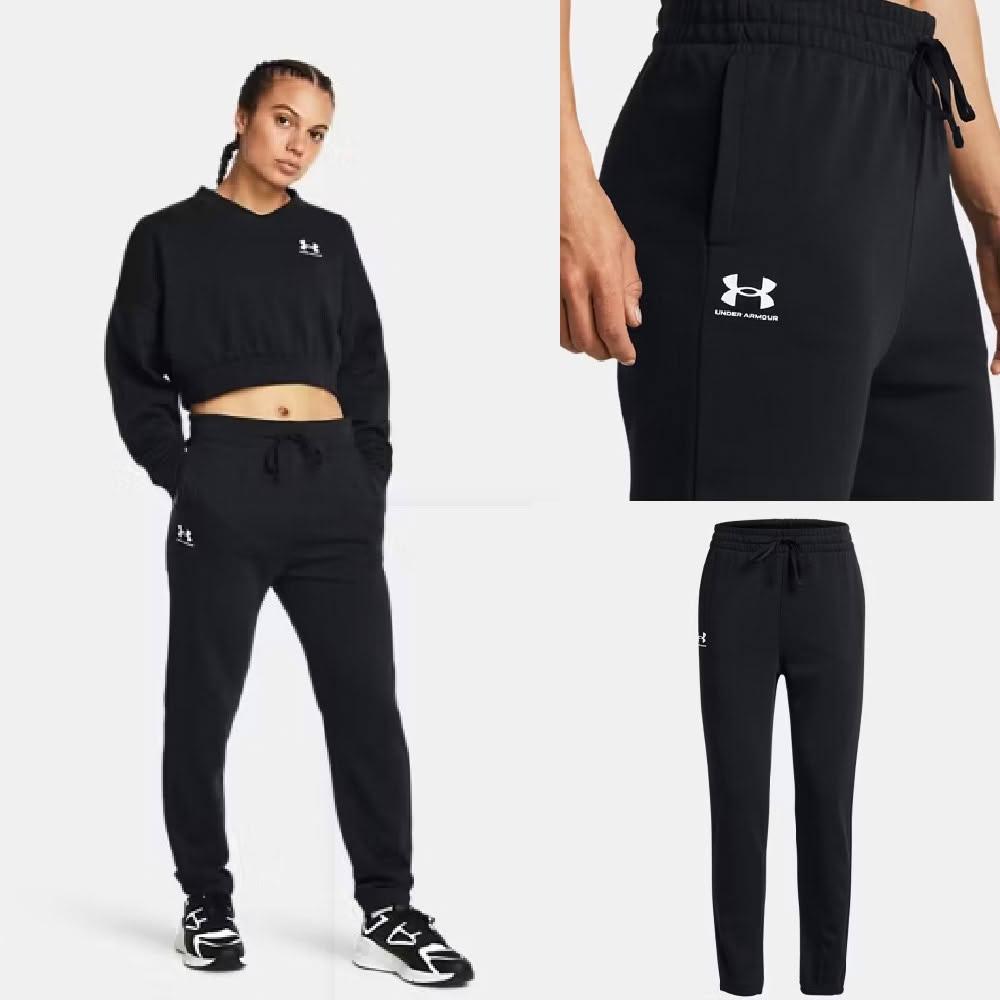 UNDER ARMOURUA 女 運動棉長褲 棉褲 毛巾底 四季可穿 布料柔軟 褲頭有綁帶 可調節鬆緊 黑 1382735001