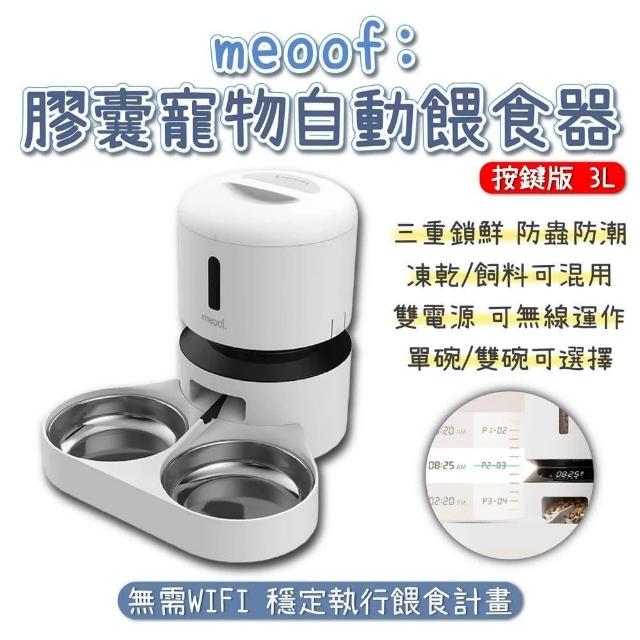 meoof膠囊寵物自動餵食器 按鍵版 3L 單碗 雙碗 餵食器 雙電源 自動餵食器 寵物餵食器 餵食機 免wifi 覓凹