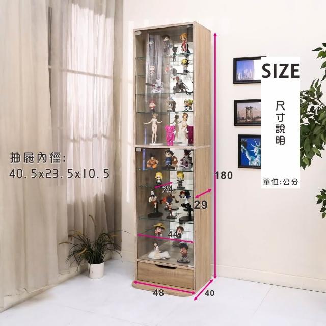 BuyJMMIT附LED燈鏡面背板高180公分抽屜式低甲醛十層玻璃展示櫃(公仔櫃/置物櫃/收納櫃/模型櫃)
