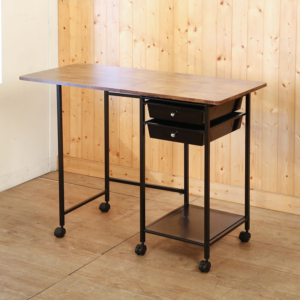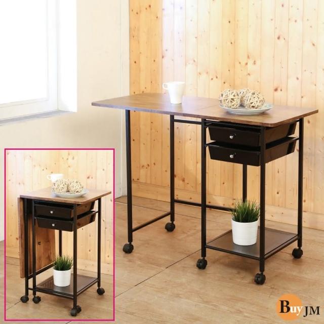 BuyJM復古木紋附抽屜移動式折合桌/電腦桌/工作桌/書桌