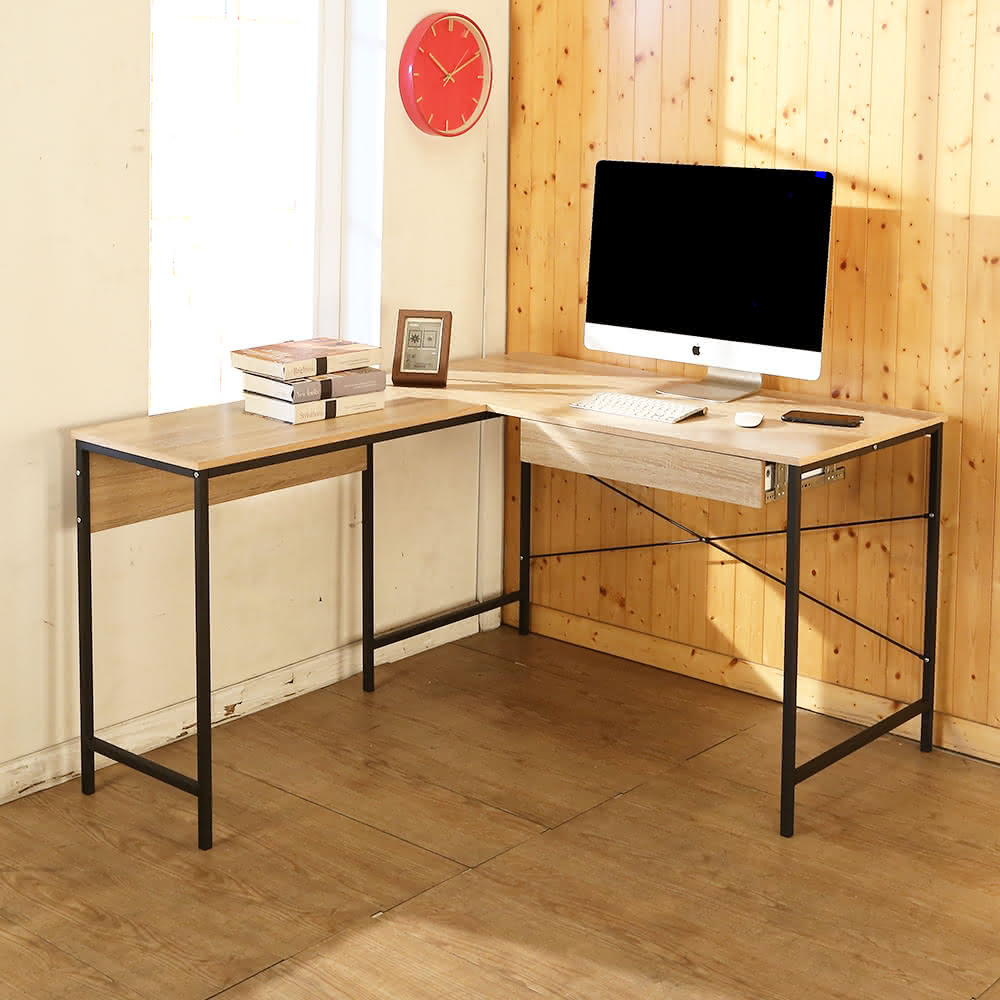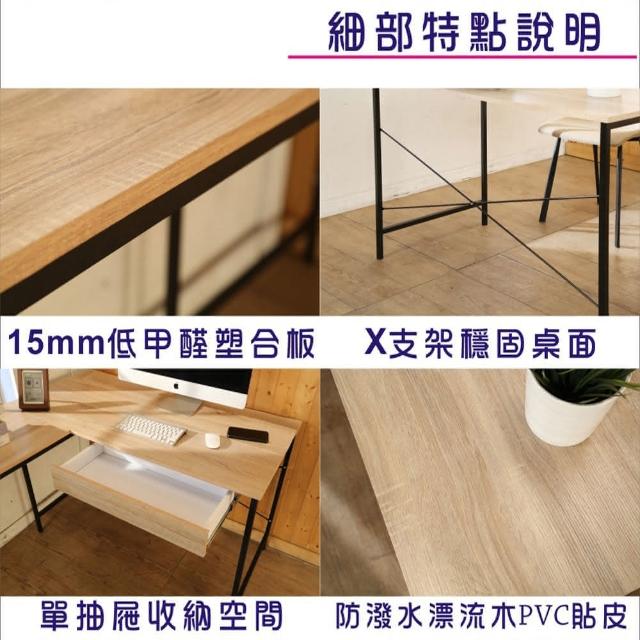 BuyJMMIT低甲醛L型木紋轉角附抽屜書桌 120cm+80cm(工作桌 電腦桌 辦公桌 桌子 大桌面 L桌 木頭桌 工業風