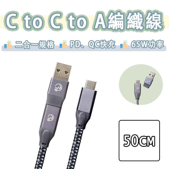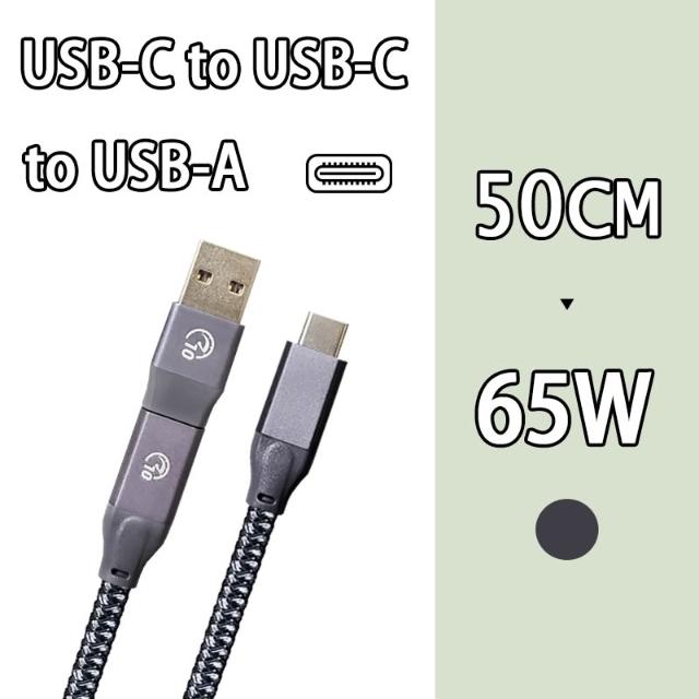 鋁合金 C to C to A 編織線 50cm 短線 快充線 傳輸線 充電線 二合一 USB3.2 10Gbps Type-c